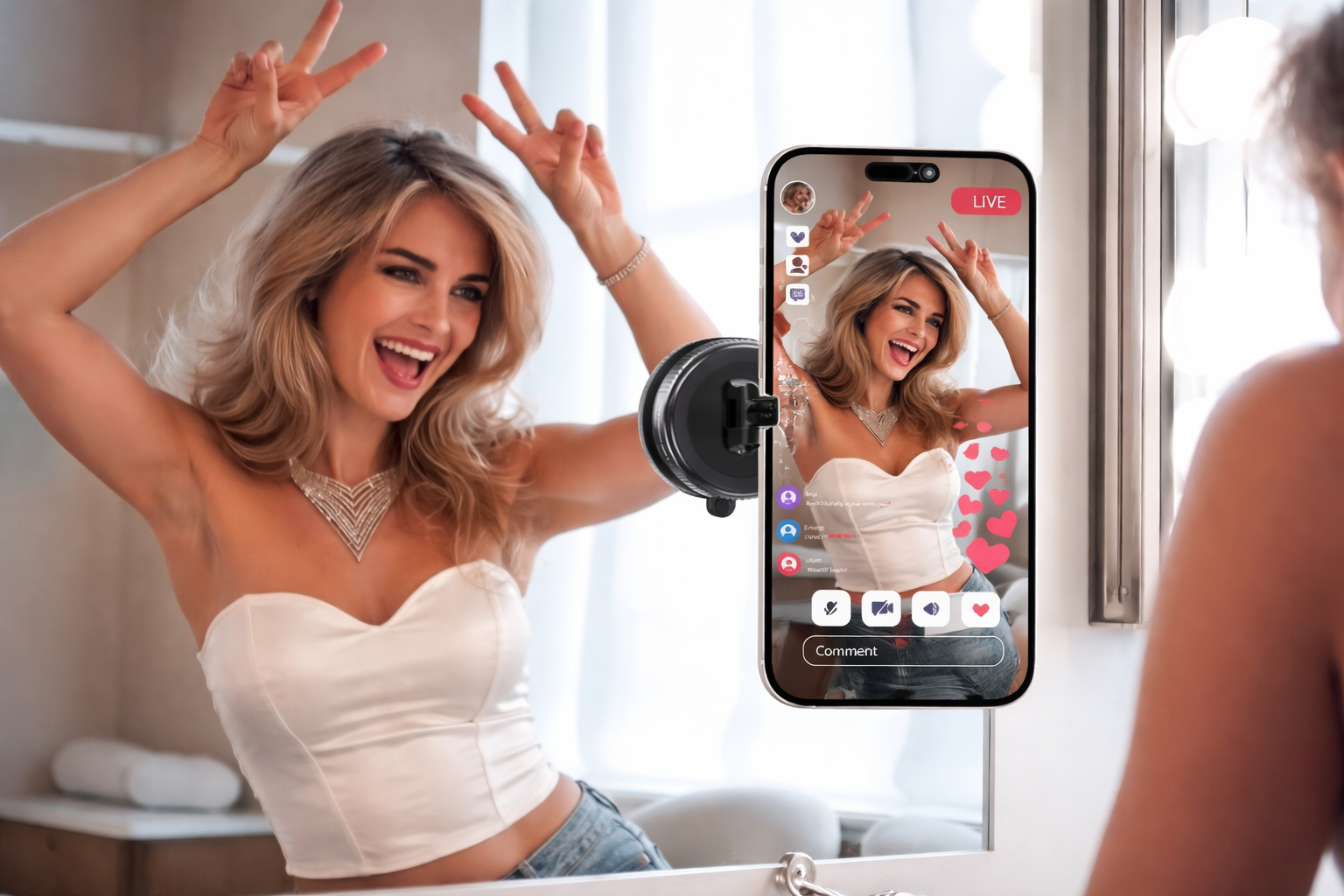 Drücken Sie den Saugnapf auf eine beliebige glatte Oberfläche (Glas, Armaturenbrett, Spiegel oder Fliesen). Drehen Sie den Metallring in die Position „TIGHT“, um das mechanische Vakuum zu aktivieren. Jetzt hält die Halterung bombenfest!